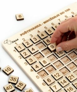 Lesena poštevanka je odličen didaktični pripomoček s pomočjo katerega otrok utrjuje znanje poštevanke skozi igro.
