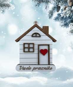 Božična hiška je dimenzij 80×95 mm in debeline 6mm.